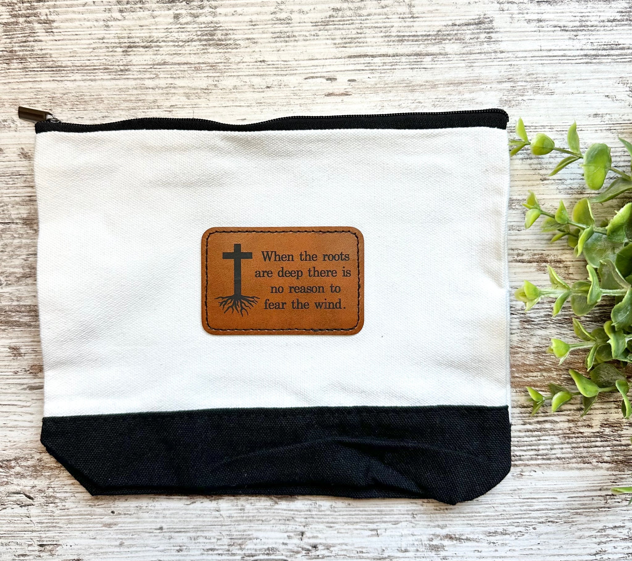 The durable canvas holds all your small essentials, while the engraved leather patch adds a touch of uniqueness.