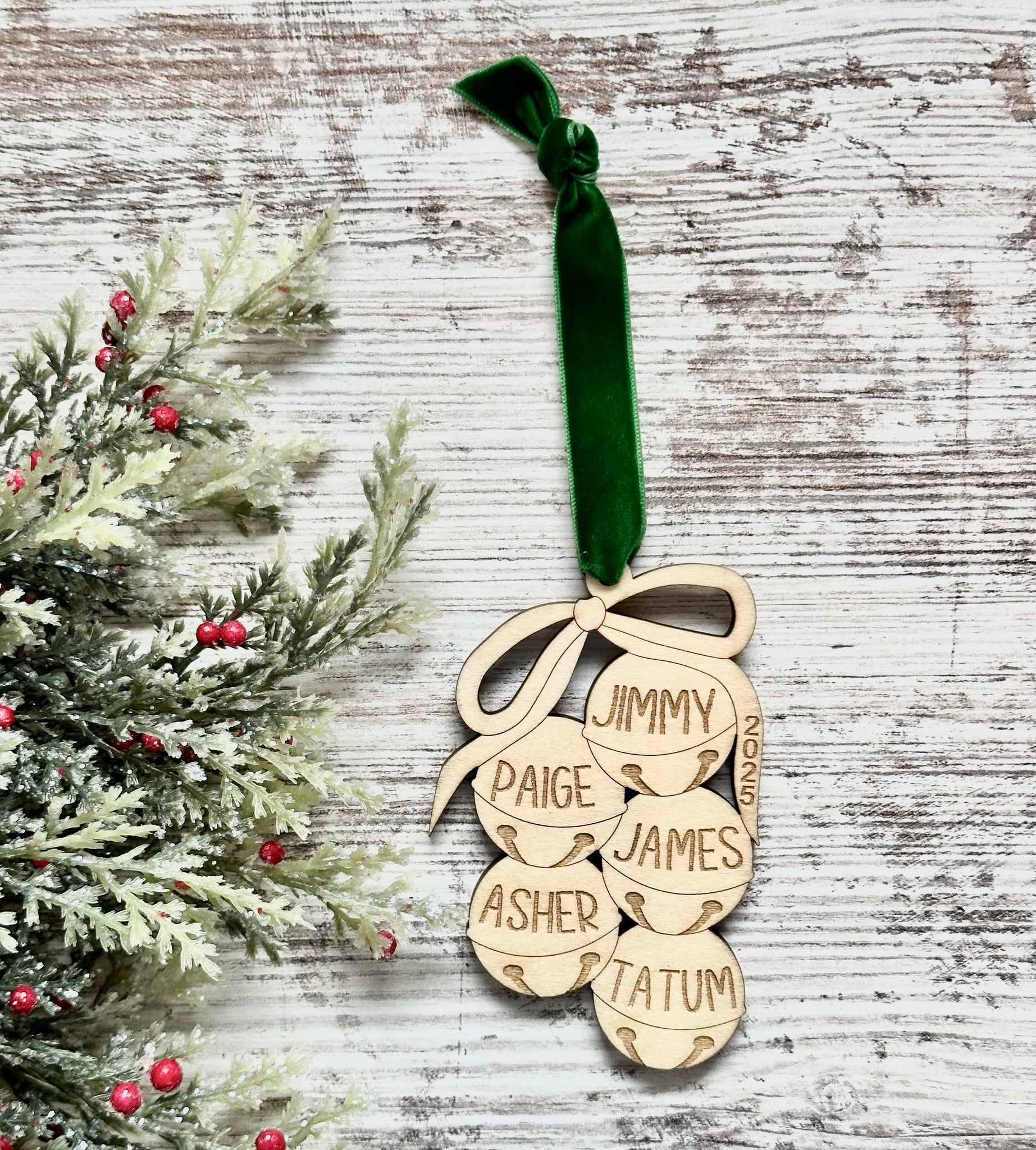 Wooden Laser Engraved Jingle Bell Family Ornament